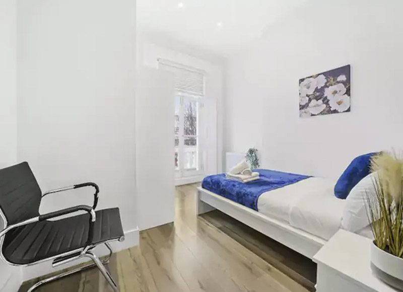 This fashionable 2 Bedroom apartment is located in Kings Cross. The mainline Kings Cross St Pancras station is just a stone throw away 3 min walk. The west end and all major attrac