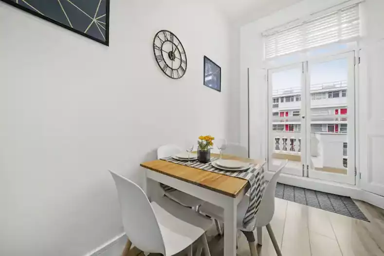 2 tranquil double bedrooms and a lounge, ideal for Small Groups and Families or even individuals who would like some quality space. All complete with hotel quality linen, ensuring a wonderful, refreshing night’s sleep. The Bathroom contains a modern power shower complimented with soft fluffy hotel quality towels and basic toiletries for you to use. The compact kitchen has everything you need to prepare a tasty meal. Close to the Capital’s Iconic London Eye and West-end Theatres
