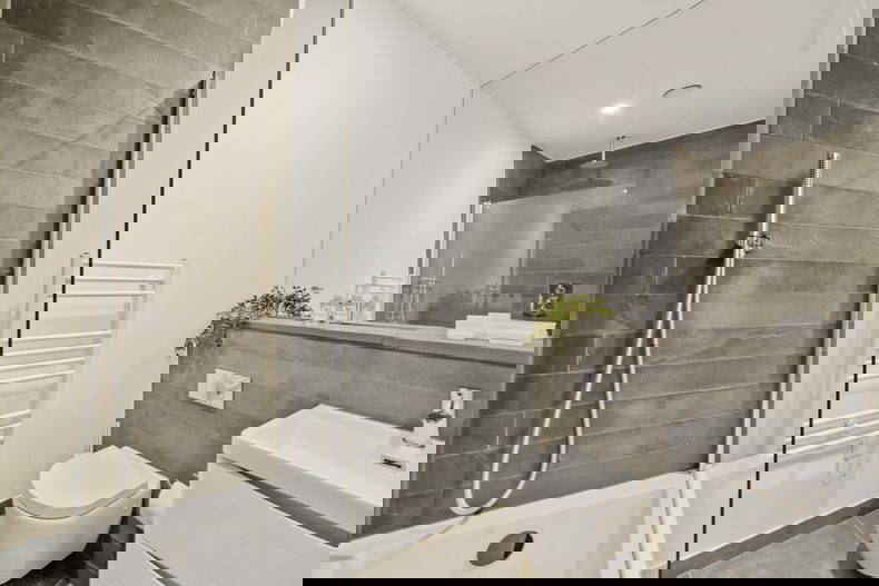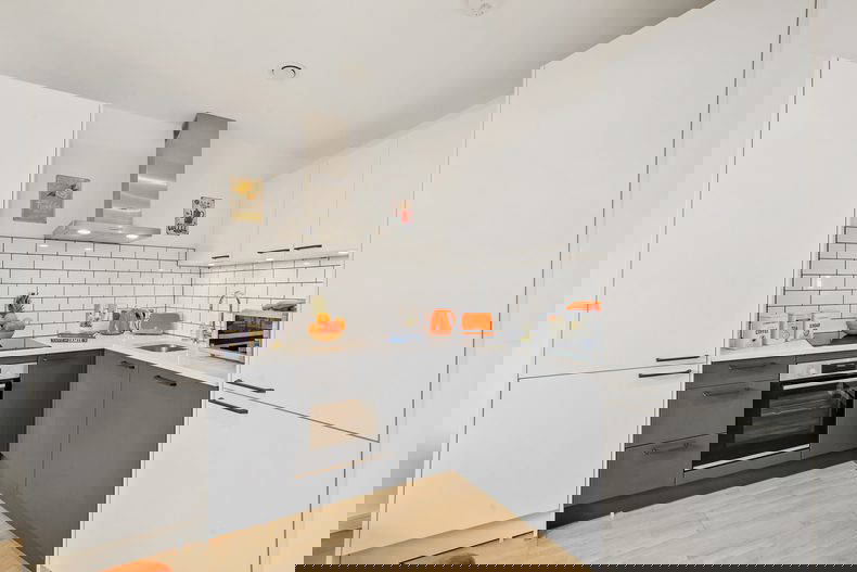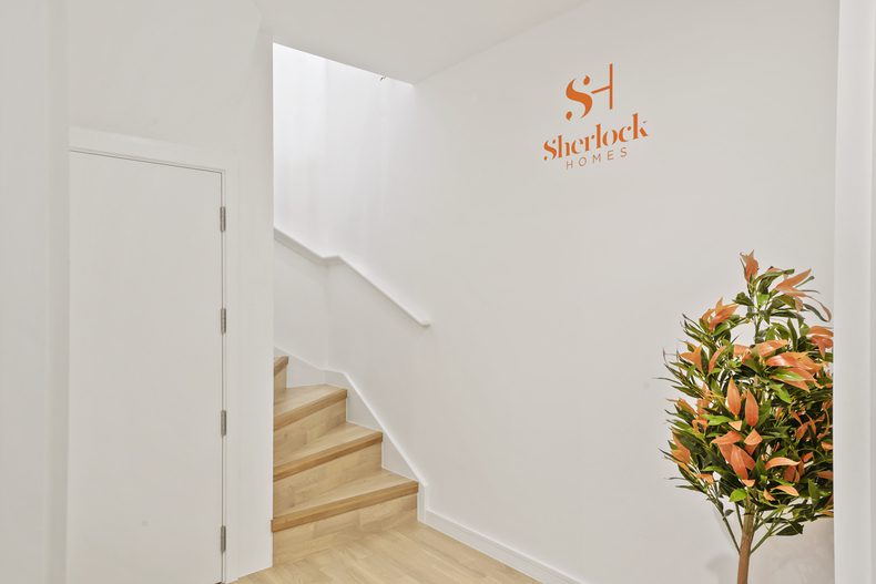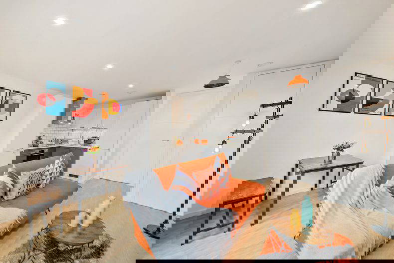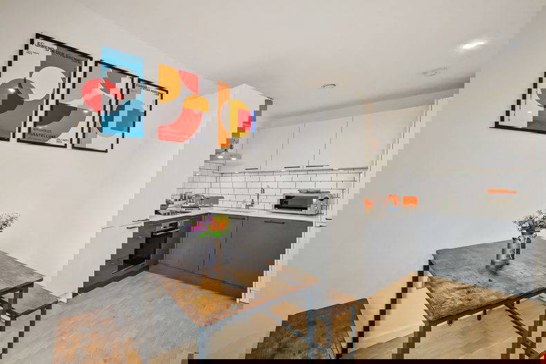 An exceptional space with an open plan kitchen/lounge that has a sofa bed if needed (or for use as a seating area) and a compact yet vintage dining table that could easily be used as a desk to work from home. The apartment is over two floors with two bathrooms and a separate WC and is in a fully secured building.